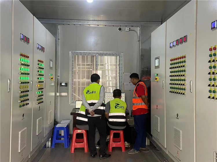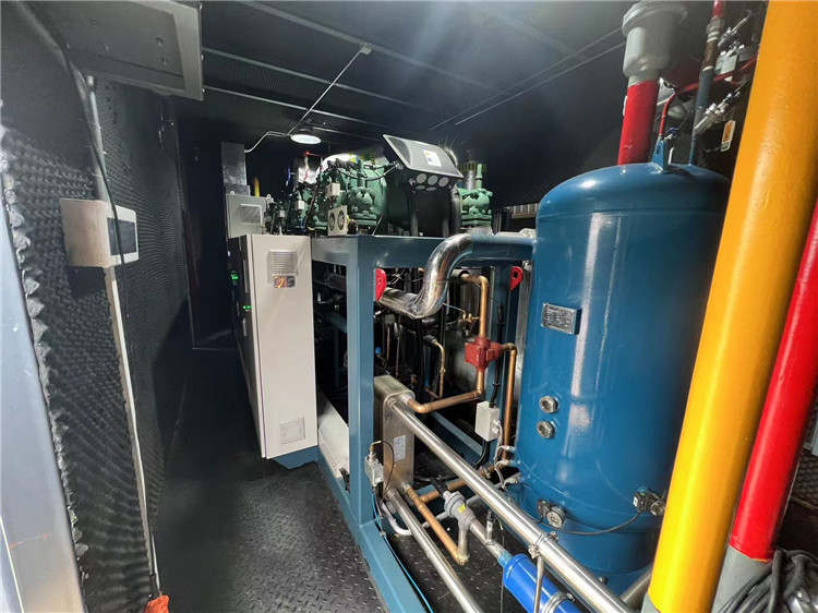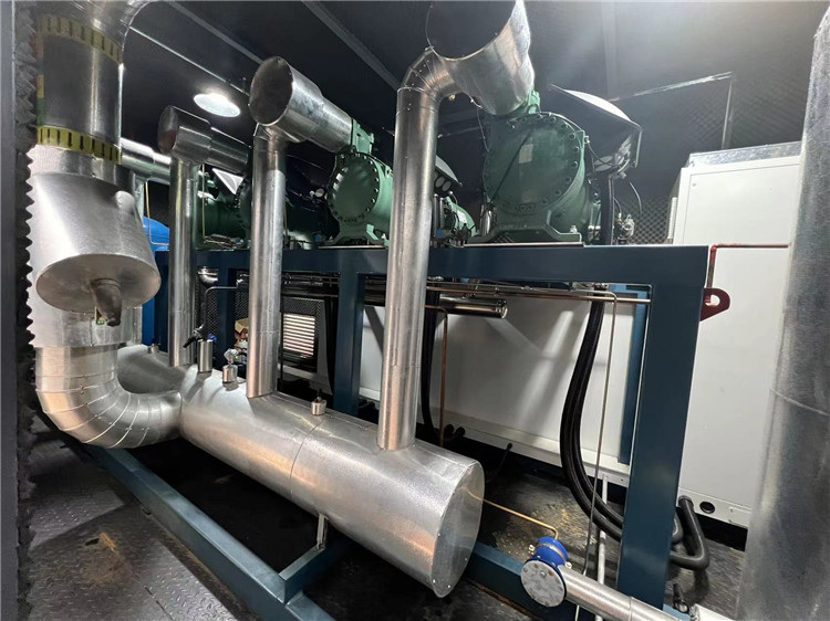 普冷南寧倉庫采用大森氟利昂(R507)直接膨脹供液制冷系統(tǒng),主機(jī)選用螺桿并聯(lián)機(jī)組,為冷凍、冷藏、低溫穿堂三個溫區(qū)提供冷源。制冷機(jī)房采用集裝箱式制冷站的形式,完美解決干倉改造中前期設(shè)計無制冷機(jī)房的痛點。