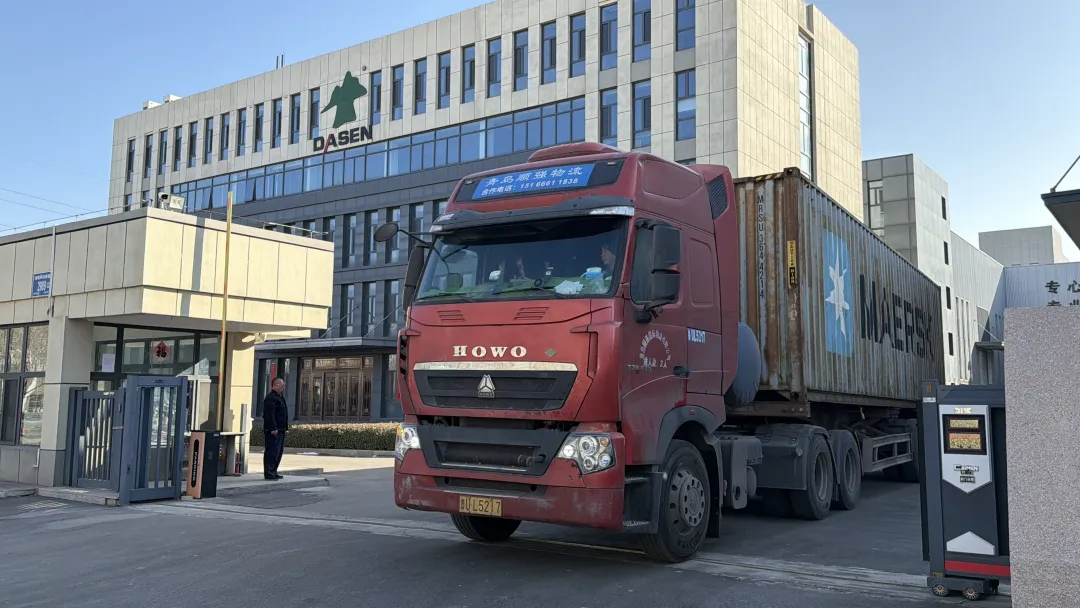 十輛滿載著大森速凍設備的集裝箱半掛車陸續(xù)裝箱駛離廠區(qū),向著青島港出發(fā),開啟跨國履約之旅。