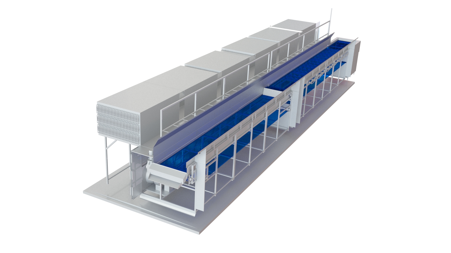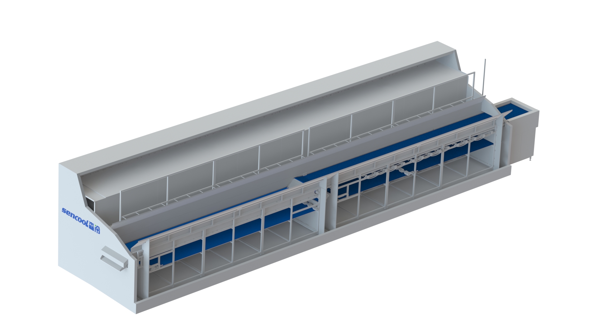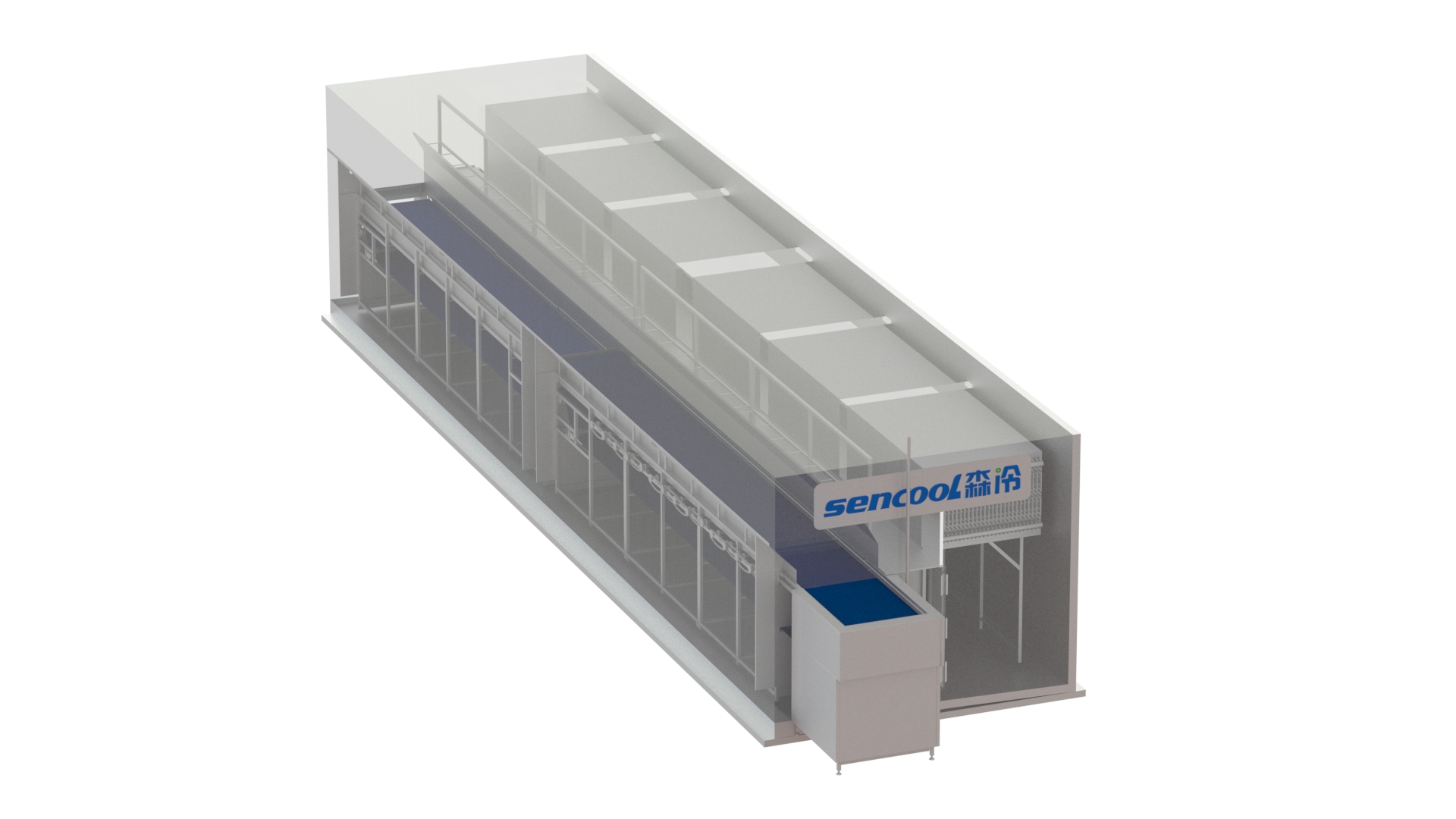 流態(tài)化速凍機(jī)是大森采用歐洲設(shè)計(jì)理念,通過(guò)機(jī)械震動(dòng)和獨(dú)特的四維氣流的作用使物料在輸送帶上懸浮速凍,從而實(shí)現(xiàn)物料單體快速凍結(jié),防止粘連。根據(jù)結(jié)構(gòu)形式不同,又分為一段式流態(tài)化和兩段式流態(tài)化。