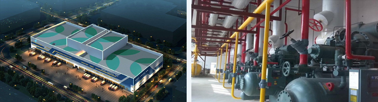 1#2#加封閉式冷藏碼頭,總建筑面積14344㎡,總存儲(chǔ)容積165640m3,高低溫冷庫(kù)凈層高24米二間,為全自動(dòng)立體化冷庫(kù),另凈高12米2間,其中設(shè)一間變溫庫(kù)。氨制冷系統(tǒng),末端吊頂式冷風(fēng)機(jī),自動(dòng)熱氨融霜加自然融霜,位于福建廈門,為中國(guó)第一座超過24米的立體冷庫(kù),也是廈門首個(gè)集冷凍、冷藏、恒溫、常溫于一體的多溫層現(xiàn)代化冷庫(kù)。