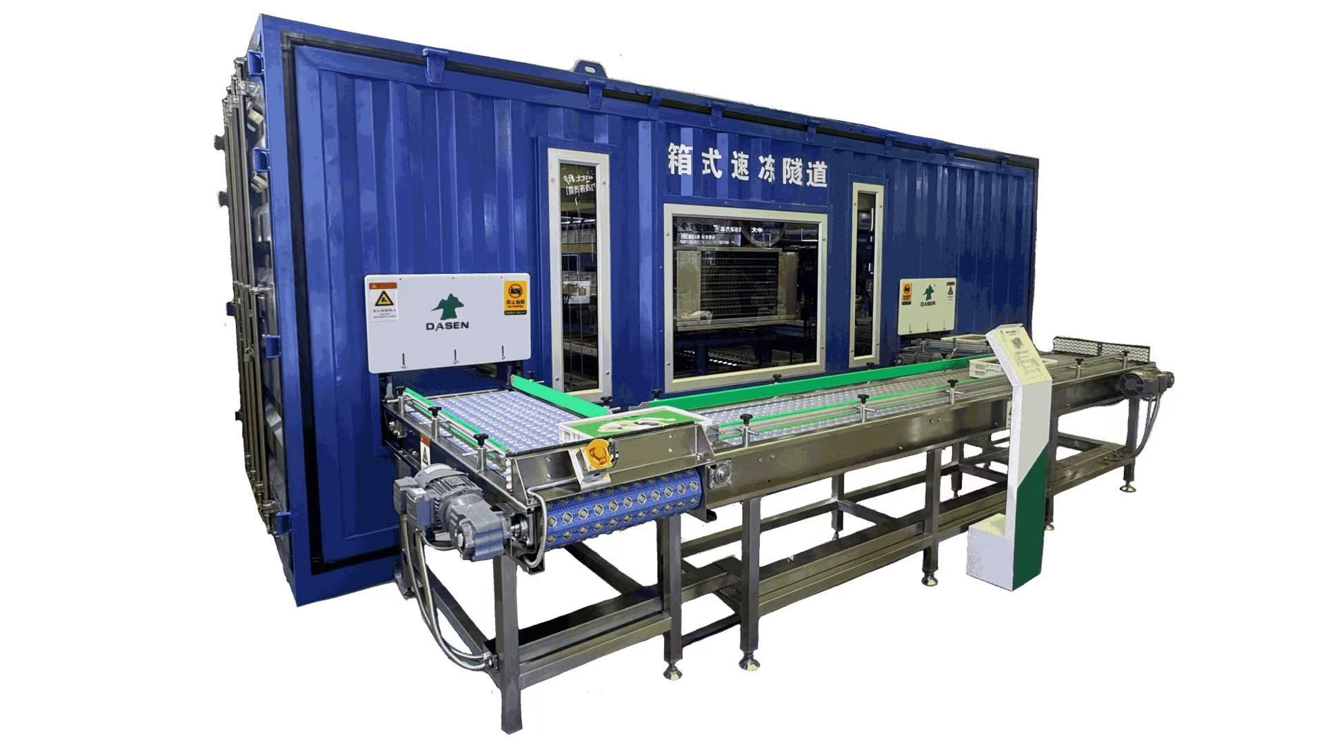 大型智能箱式速凍裝置是大森針對特大生產(chǎn)量紙箱包裝、塑料盒包裝的貨物冷卻和凍結(jié),采用歐洲設(shè)計理念,設(shè)計開發(fā)的一款新型智能速凍裝置。